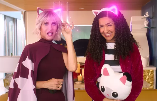 Once they slay enough demons to seal them off from the human world, Rumi can remove the marks she’s spent her whole life hiding. Rumi isn’t the only one trying to erase a part of herself. A bad boy demon named Jinu (Ahn Hyo-seop) seeks to wash away the tragic memories of his past life. The Demon King agrees to free him of his trauma if Jinu can take down the girl group. His solution? A boy band that steals the spotlight along with the souls of their adoring fans! It’s crazy enough to work, as this entire world apparently revolves around K-pop. The premise sounds bonkers, which directors Maggie Kang and Chris Appelhans (Wish Dragon) fully embrace. As chaotically kinetic as KPop Demon Hunters can be, it’s also a surprisingly poignant story of self-acceptance.